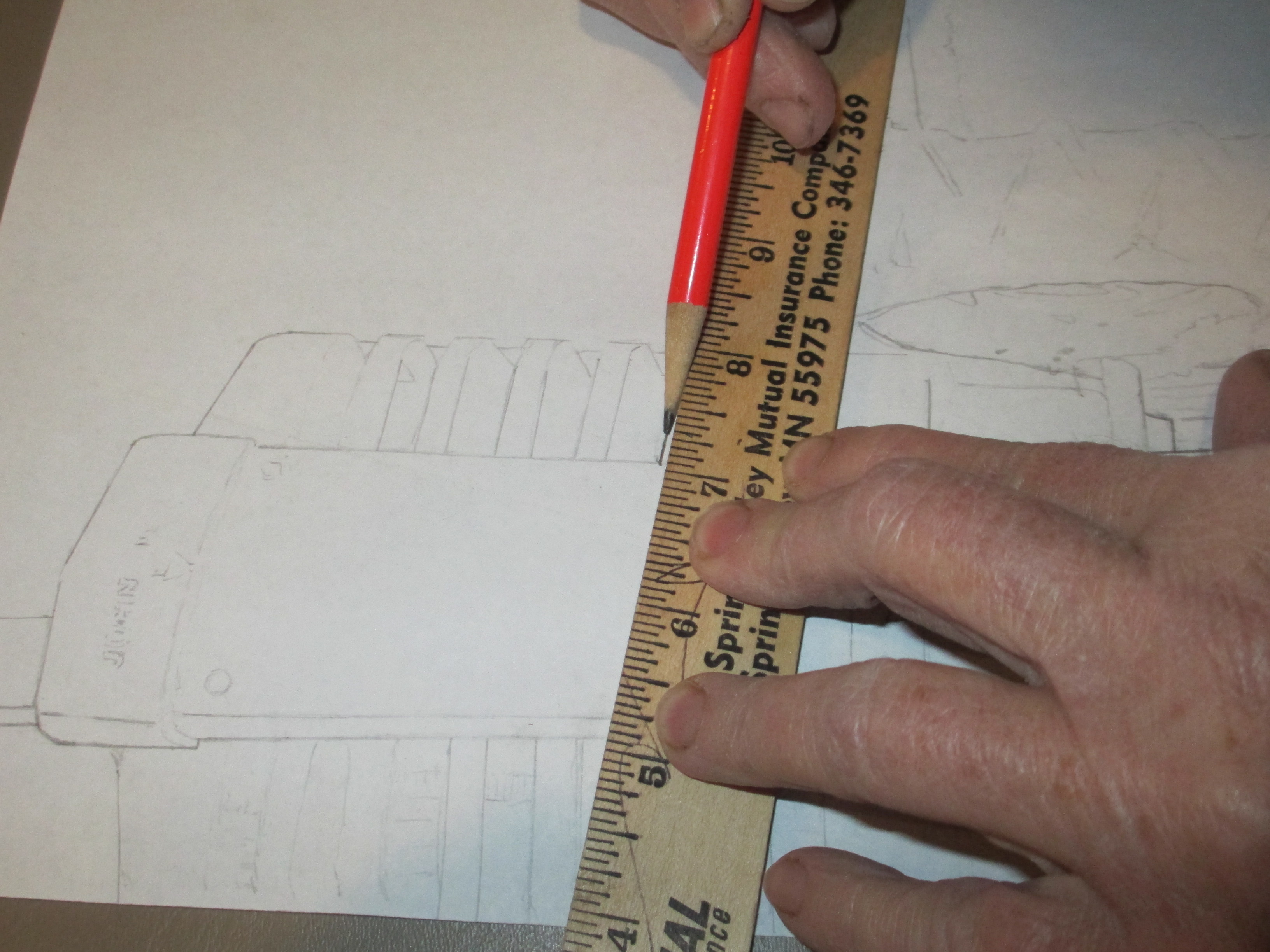 When I have traced and marked key points on my drawing, it is time to remove it and the large-size photo from the window pane. The lines, at this point, are very light and feebly drawn. Lines, therefore, must be accented by heavier, firmer pencil strokes.